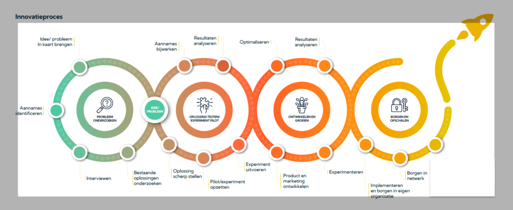 Innovatie is doelgericht en gestructureerd werken aan het veranderen in de gewenste richting. In kleine of grotere stappen met altijd het eindresultaat in het oog.